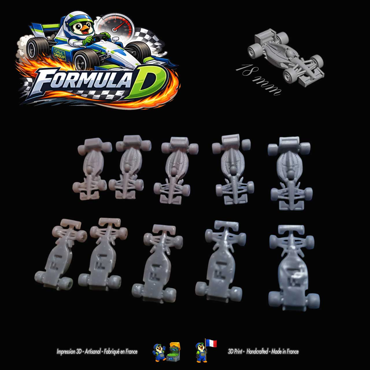 10 Miniatures de F1 adaptées pour le jeu de société Formula D / Formule Dé.