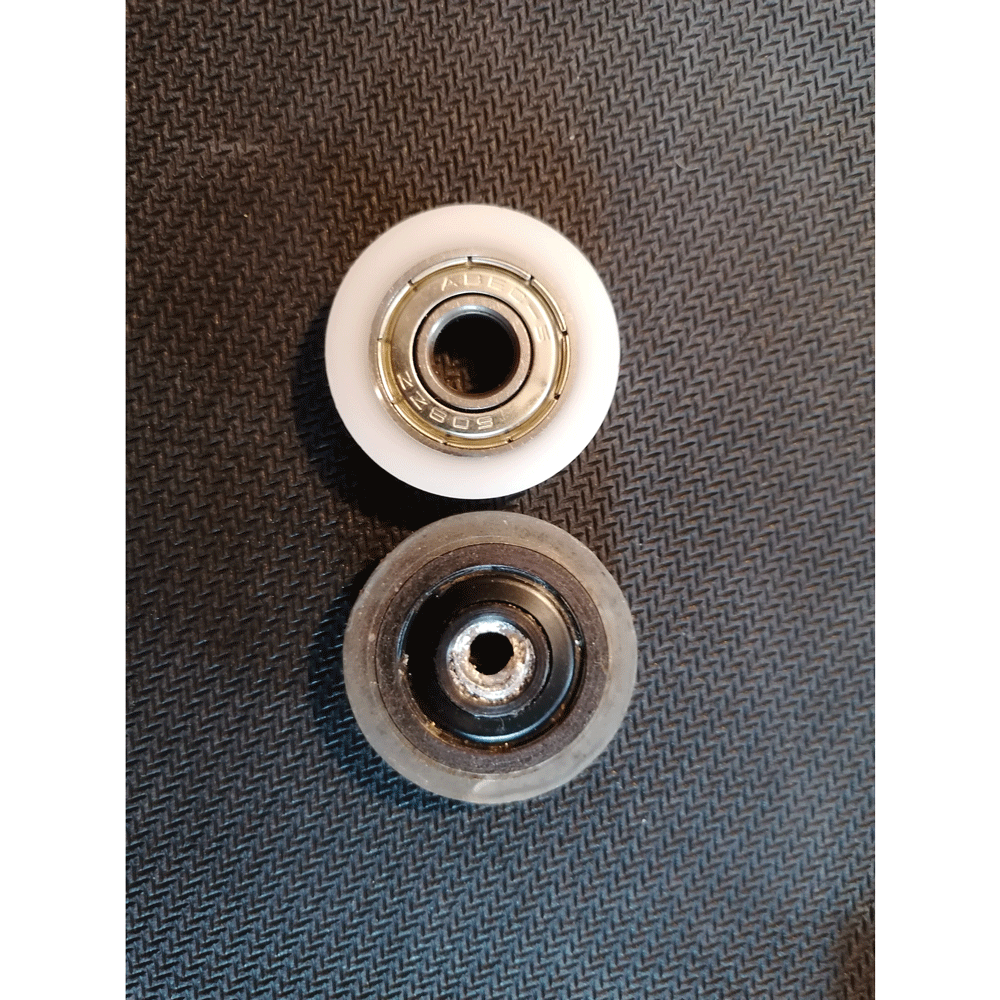 Kit comprenant 4 roulements (Ø8 x Ø29.5 x 7mm), 8 bagues ABS, 4 rondelles adaptées et 4 rivet aveugles (Ø4.8 x 16). Quelques pièces de rechanges sont généralement livrées en sus (2-4 bagues et 1 rivet).